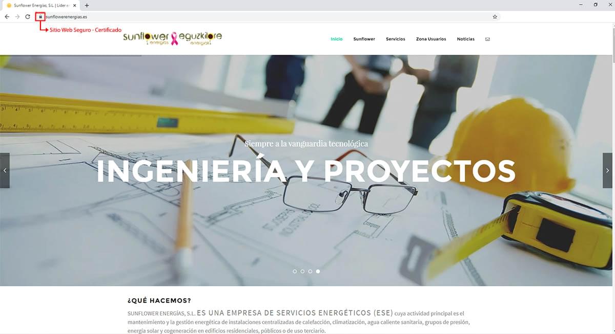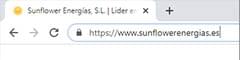 - La página web de Sunflower Energías corre bajo el protocolo https dando un nivel adicional de seguridad en las comunicaciones. Para comprobar que está entrando en este tipo de sitios hay que observar información que ofrecen los navegadores en modo de icono, normalmente un candado en la barra de navegación. ![]()  ![]()